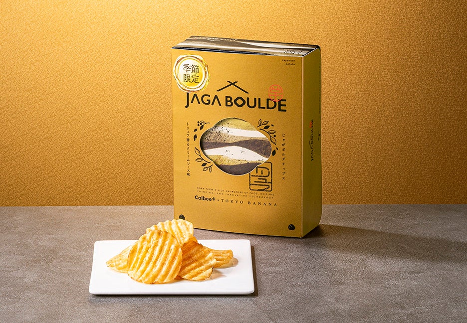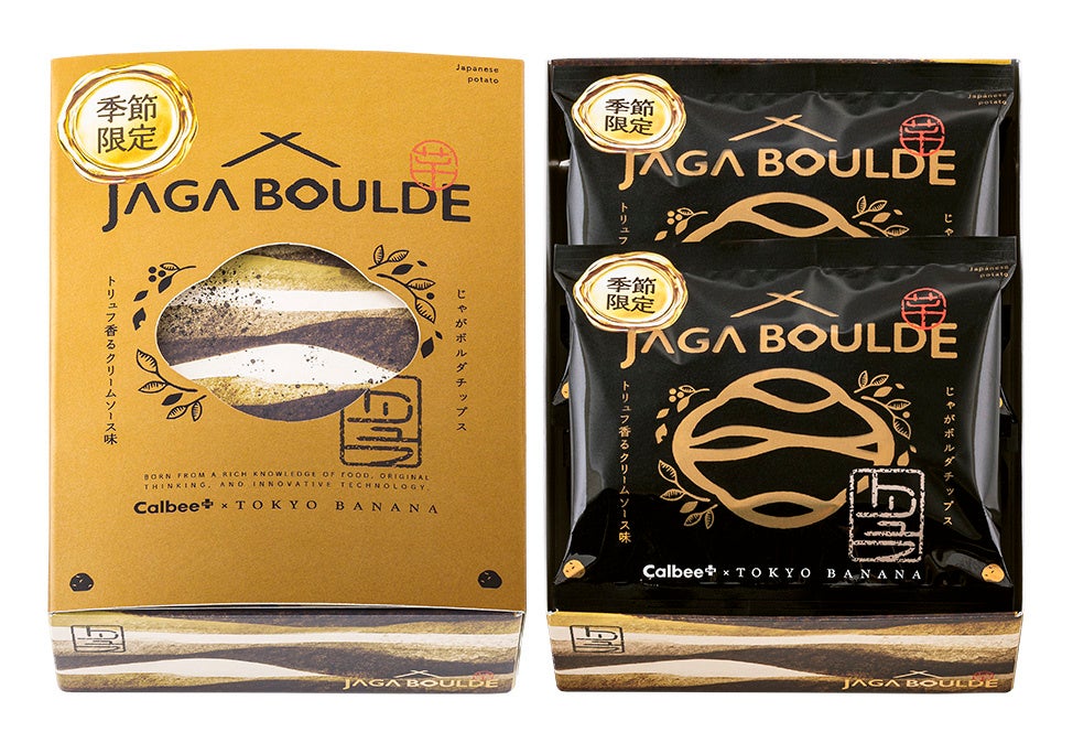 カルビーの一歩進んだ“おいしい”“楽しい”“うれしい”を提案するアンテナショップ「カルビープラス」と「東京ばな奈」がコラボレーションして誕生した「じゃがボルダ」。今年4月にリニューアルし連日行列ができるほど大人気です。そんな「じゃがボルダ」から、昨年5万9千箱以上販売した秋冬限定『トリュフ⾹るクリームソース味』が再び登場!トリュフの魅惑的な香りを堪能できるご褒美ポテトチップスをぜひお楽しみください。