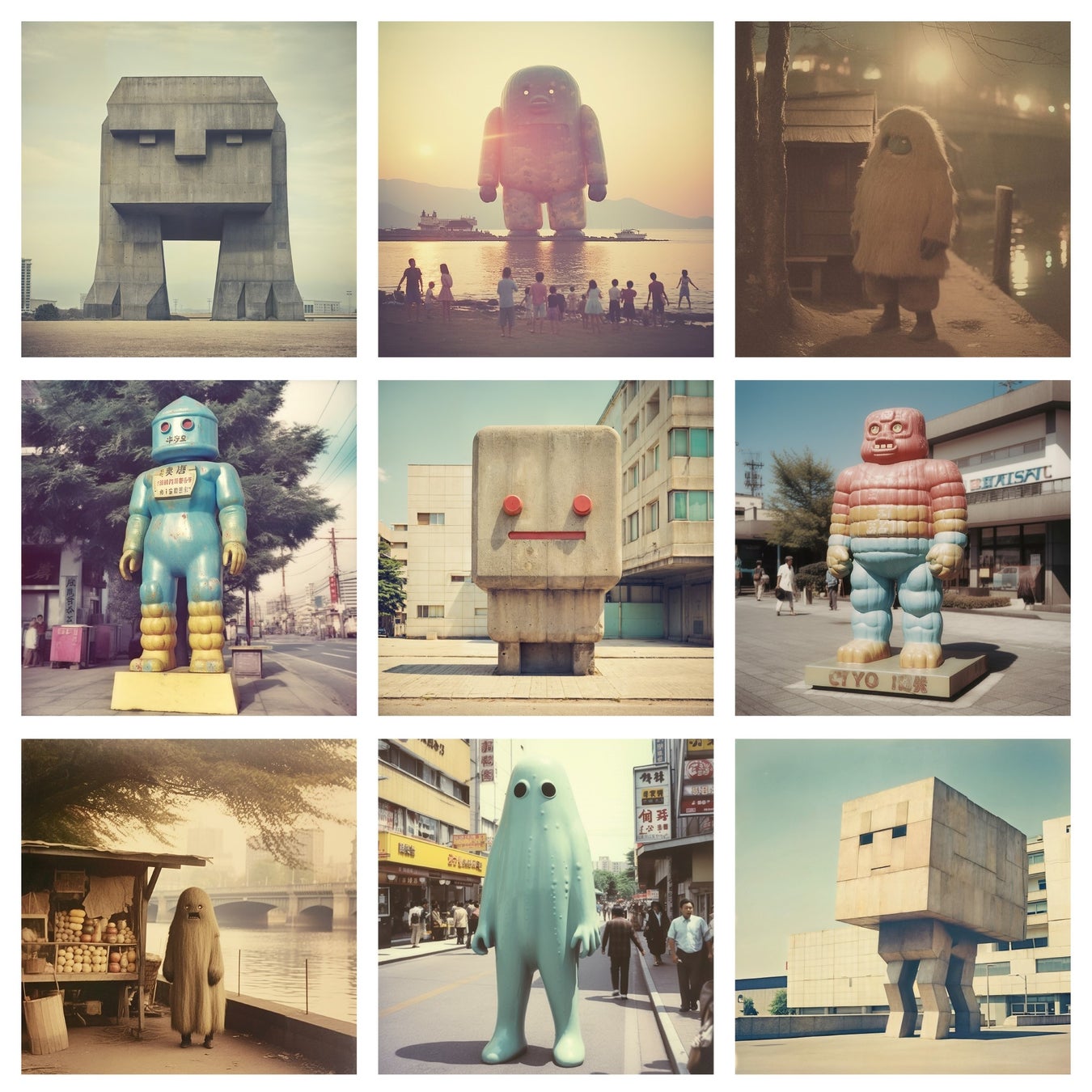 ノスタルジーと、そこはかとない不安感の混じった架空の東京。そこには、さまざまなゴーレム達が佇んでいます。その風景を切り取り、集めたものが東京ゴーレムです。