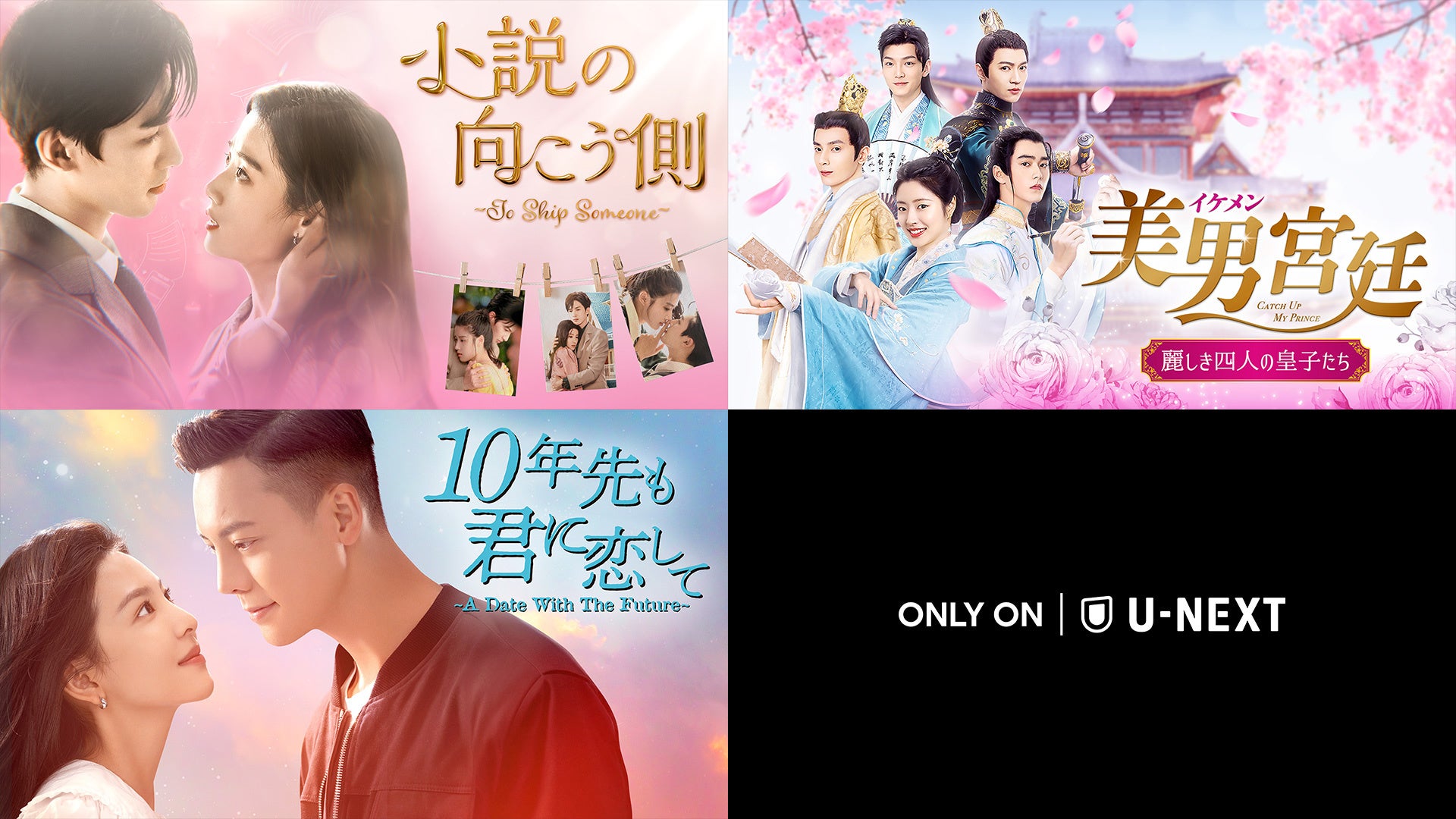 USEN-NEXT GROUPの株式会社U-NEXT(本社:東京都品川区、代表取締役社長:堤 天心)が運営する動画配信サービス「U-NEXT」は、2024年3月15日(金)より中国ドラマ『小説の向こう側〜To Ship Someone〜』『美男<イケメン>宮廷~麗しき四人の皇子たち~』『10年先も君に恋して〜A Date With The Future〜』の3作品を独占配信いたしました。
