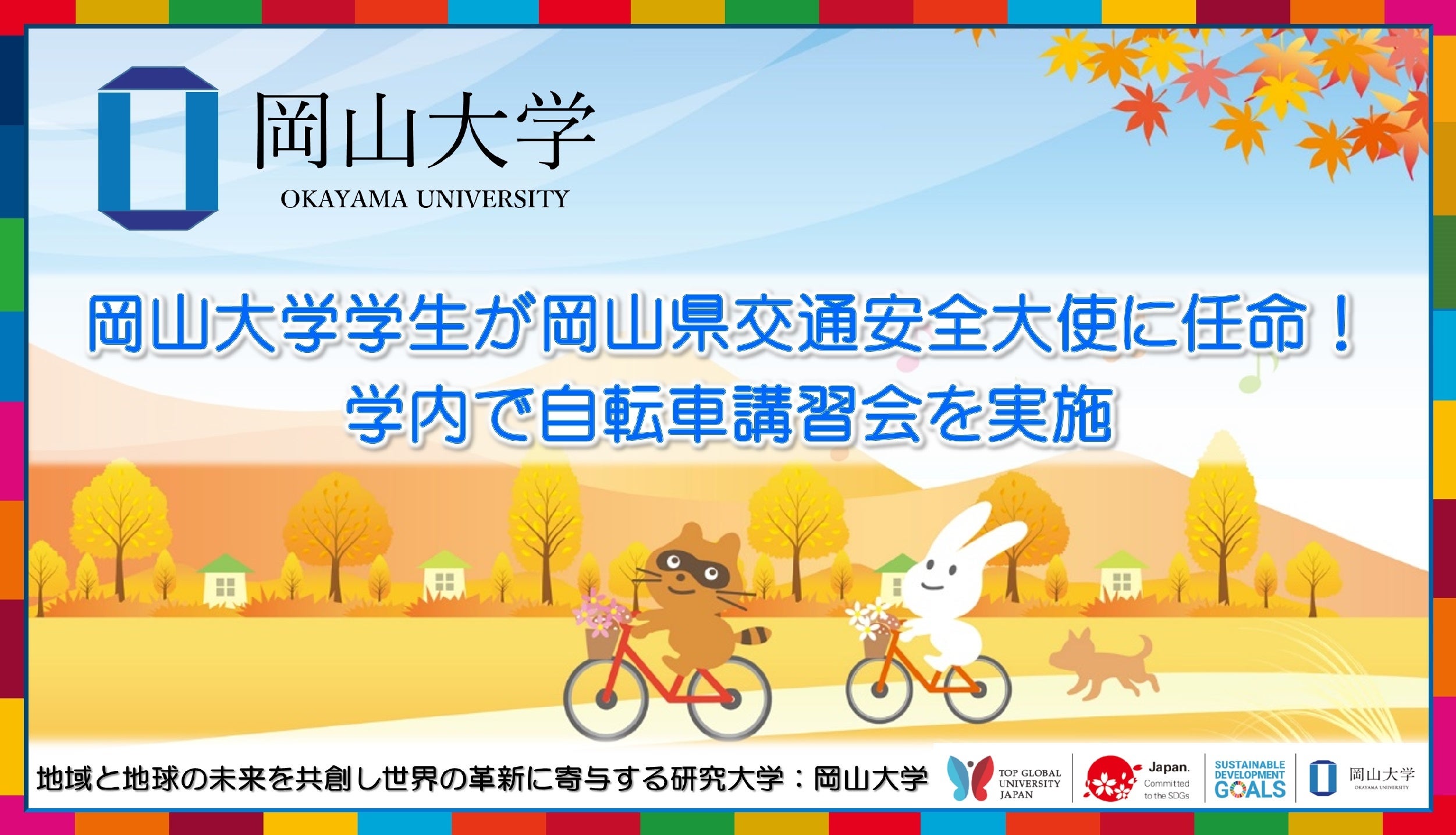 【岡山大学】岡山大学学生が岡山県交通安全大使に任命!学内で自転車講習会を実施