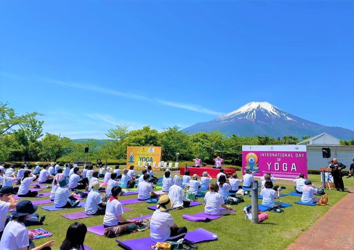 昨年の「国際ヨガの日」には、駐日インド大使館および山梨県との共催により、「Mt.FUJI ヨガフェスティバル in YAMANASHI」を山中湖畔の高台に位置する「ホテルマウント富士」(山梨県山中湖村)にて開催いたしました。当日は県内外から約200名のヨガ愛好家が集まり、インド文化と富士山地域の魅力を結びつけた、交流と感動を体験できるイベントとなりました。