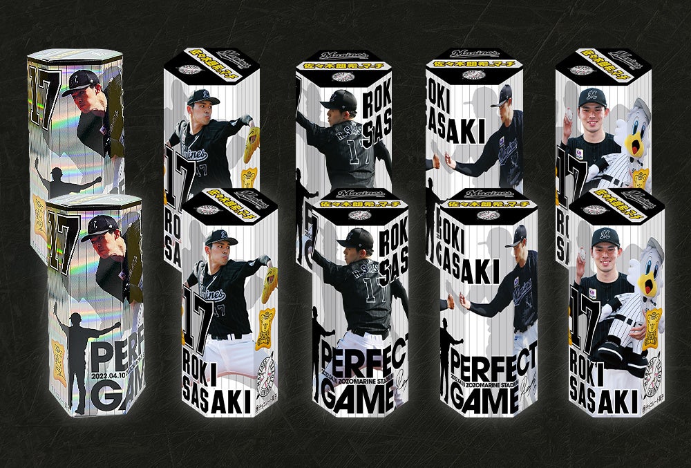 完全試合を達成したあの日の名シーンの記憶が蘇る特別デザイン5種の佐々木朗希のマーチを、オリジナルボック