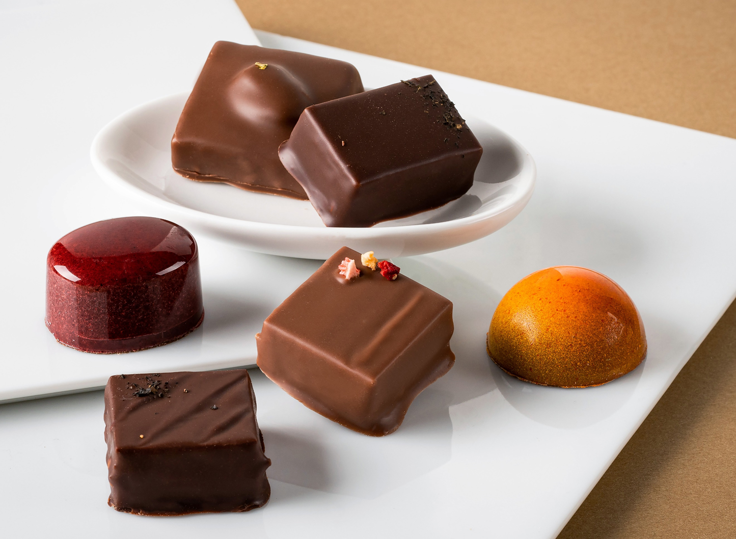 九州の食を発信するフレンチのレストラン「ジョルジュマルソー」が、レストランの名前も冠したスイーツショップ「パティスリージョルジュマルソー」。今回は八代のブルーベリーや唐津産みかん・嬉野のほうじ茶・安心院のブランデーなど九州の素材を使った6種のボンボンショコラをご用意しました。