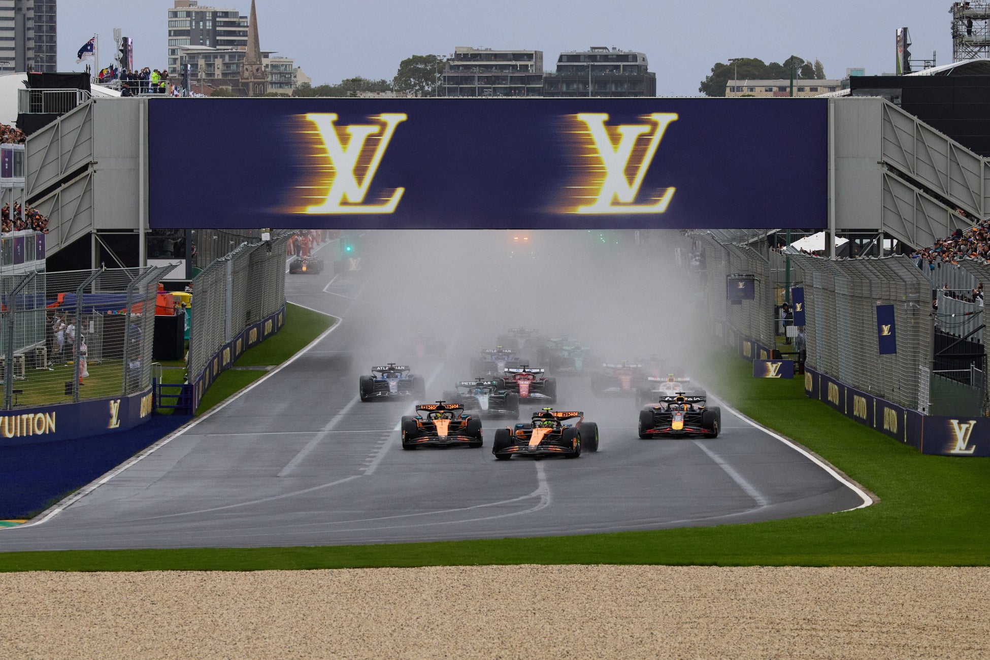 2025年シーズンの幕開けを飾るグランプリ™のタイトル·パートナーであるルイ·ヴィトンは、トラック用に新しいクリエイティブなサイネージも発表。フォーミュラ1®とルイ·ヴィトンのオフィシャル·パートナーシップのために特別に考案されたロゴは、レース開催期間中、バリアをはじめとするメルボルンのサーキット内のさまざまな場所に掲出されました。ルイ·ヴィトンにとって大切な価値観の1つであるパフォーマンスをイメージした新しいデザインは、F1®カーの突き抜けるような疾走感に溢れています。