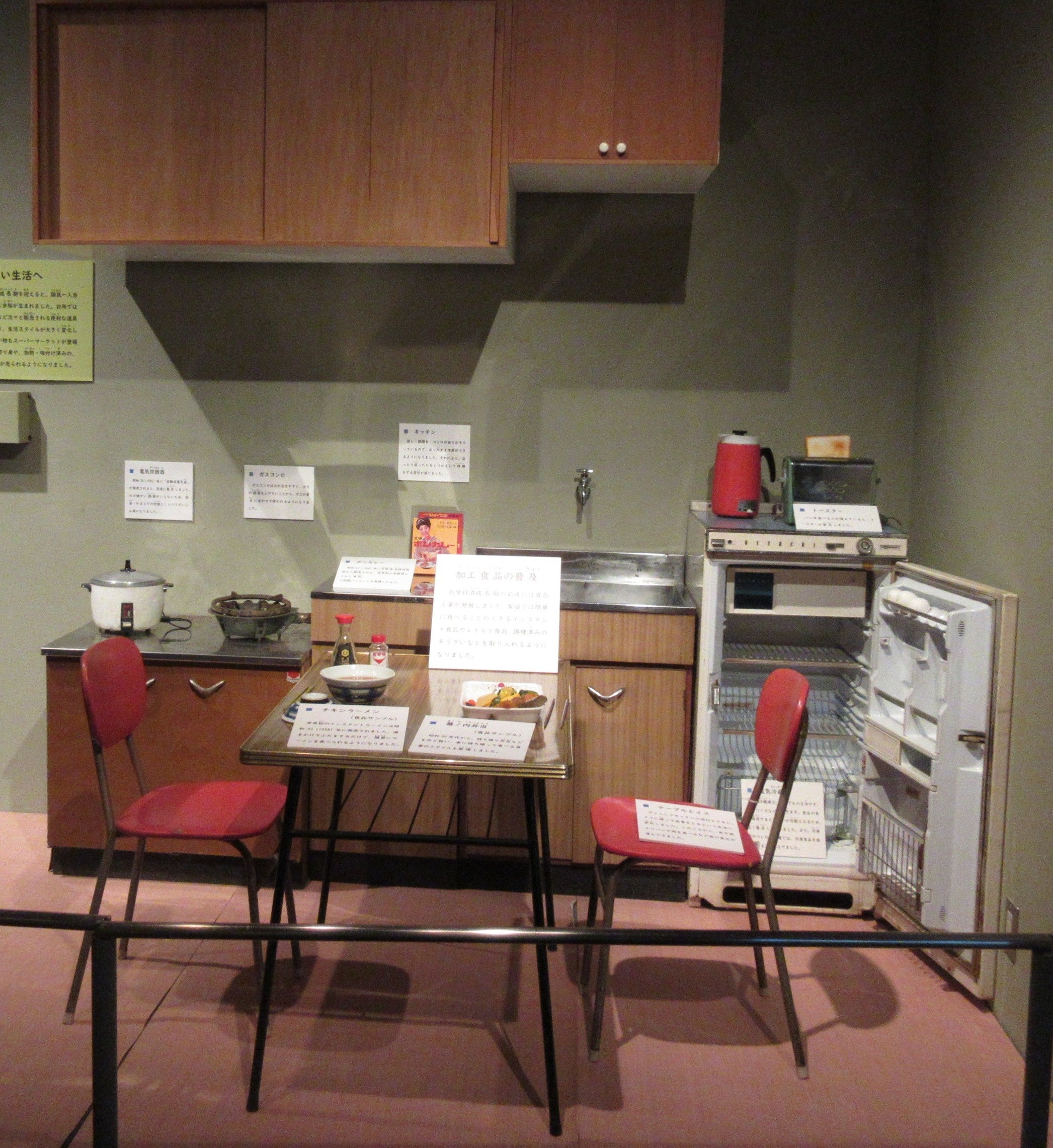 本展では、今までの総集編とし、昨年好評を頂いた多聞新八氏の絵とともに、明治時代から昭和時代までの電気やガス、水道の普及や道路・通信などの整備と、それによりどう道具や生活がうつりかわってきたのかを展示します。