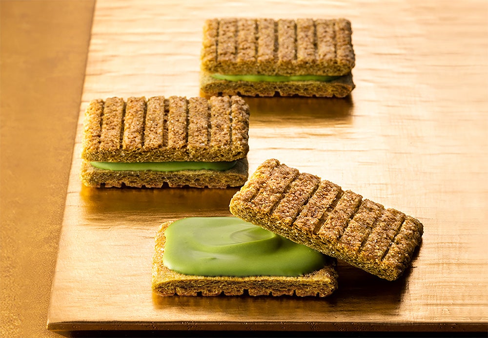 とにかく抹茶味が濃い こだわりの“ダブル抹茶”!日本有数の抹茶の里、愛知県西尾。香り高い抹茶とコク深い抹茶、2種類の石臼挽きした西尾抹茶をショコラとともにとろりと練りあげました。生地にも西尾抹茶を練りこんで、これまでにない抹茶づくしの一品です。普段は名古屋地区だけの、特別な味わいをどうぞ。