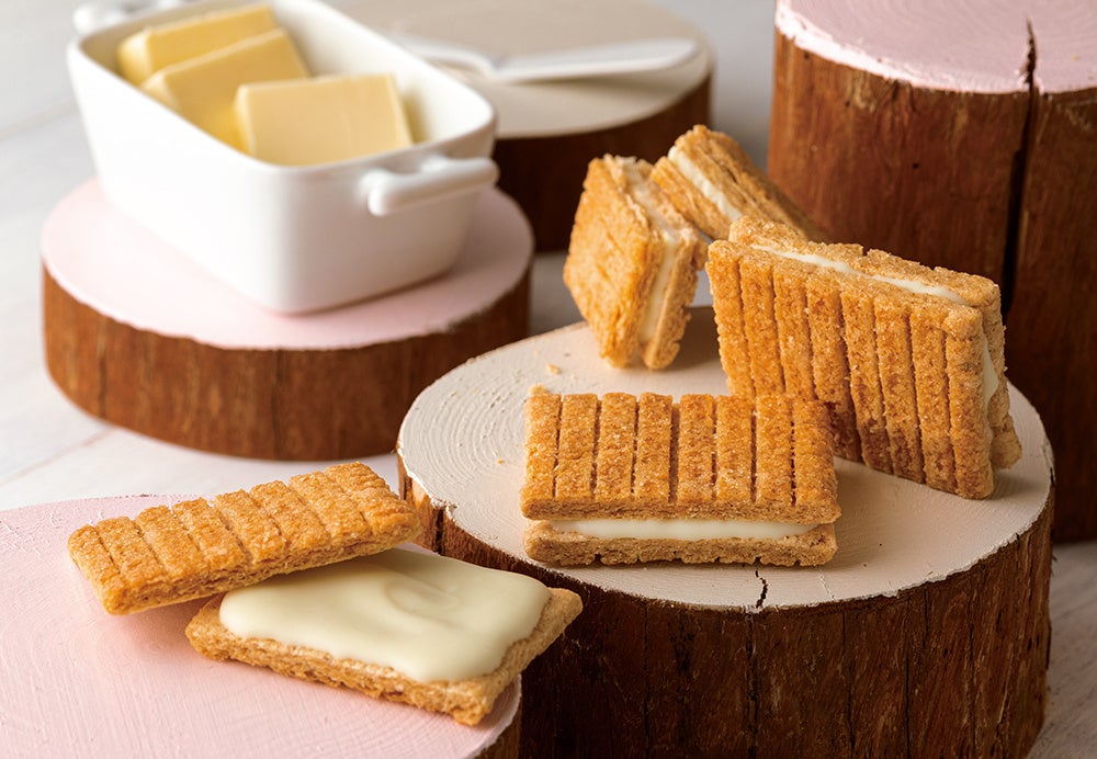 シュガーバターでこんがり焼いたシリアル生地の、くせになるサクサク食感。一度食べたら忘れられなくなるミルキー感が自慢のホワイトショコラ。「シュガーバターの木」で不動の人気No.1を誇る、名作サンドです。