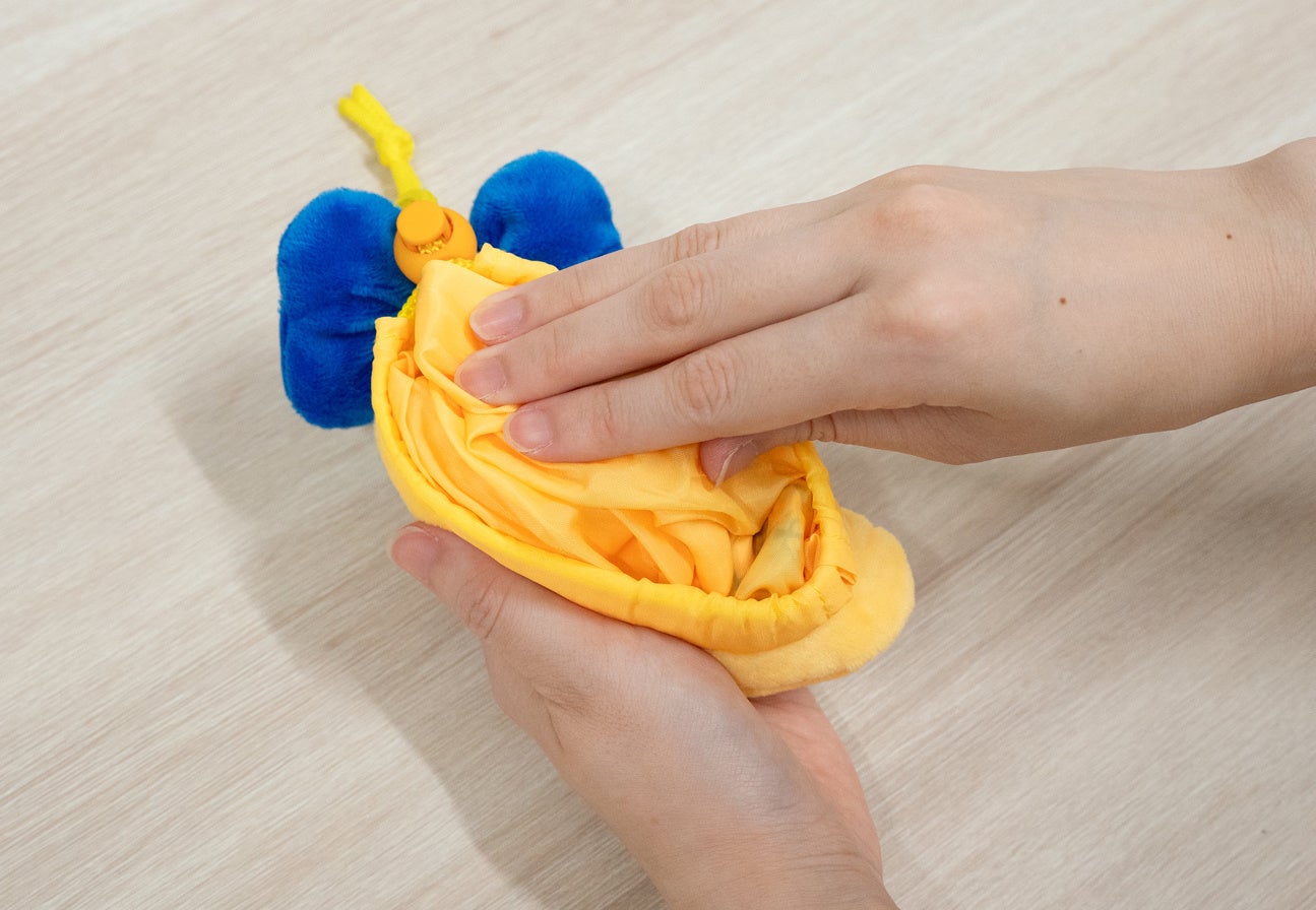 夏に開催した「東京ばな奈グッズ開発会議」にて、ファンのみなさんの投票でグッズ化が決定したアイテム「ばな奈といつでも一緒バッグ」の受注販売も実施!マスコットに生地を収納して持ち運びもできる、ぬいぐるみ付のエコバッグです。可愛くって機能的なグッズが、また一つ「東京ばな奈ワールド」に生まれました。いつでもどこでもばな奈と一緒におでかけしてくださいね。
