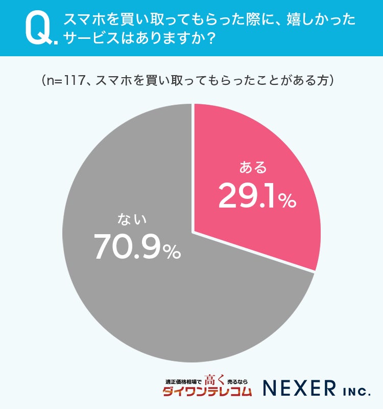 約3割の方が、スマホを買い取ってもらった際に嬉しかったサービスが「ある」と回答しています。