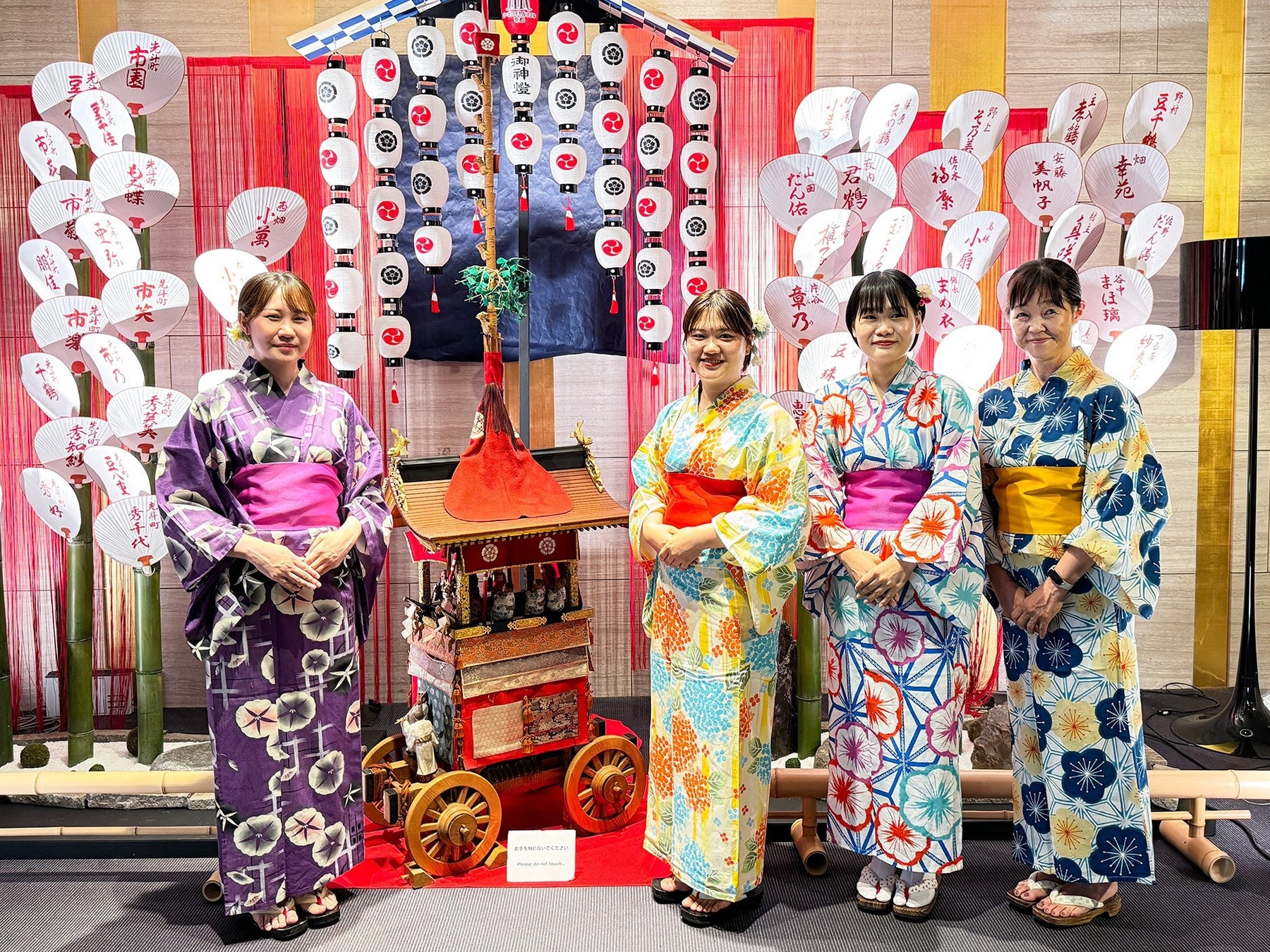 より多くのお客様に京都、衹園祭の雰囲気を愉しんでいただくため、7月15日(月・祝)から17日(水)までの3日間、フロントスタッフが通常の制服から華やかな浴衣に衣裳替えして、お客様をおもてなしします。