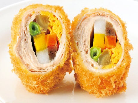 “ん”(運)の付く具を含む、計7 種の具を豚肉で巻きました。