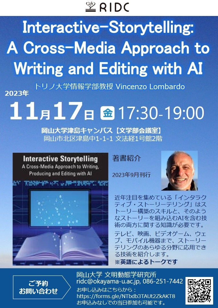 岡山大学文明動態学研究所「Interactive-Storytelling:A Cross-Media Approach to Writing and Editing with AI」〔11/17金〕