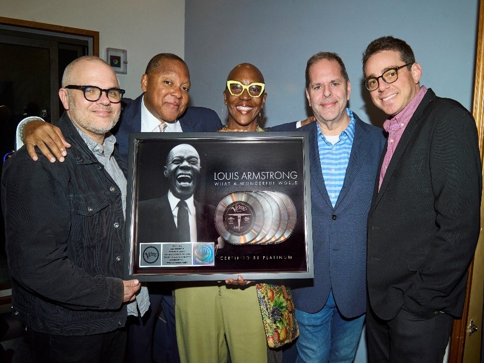 1999年にグラミー賞の殿堂入りを果たした「この素晴らしき世界」は、世界で最も愛され、最も売れたスタンダード曲のひとつです。この度、最初にリリースされた1967年からアメリカでの累計売上が500万枚を超えたことを記念して、米国レコード協会(RIAA)より「5x Platinum」に認定。ルイ・アームストロング教育財団の会長であるトランペット奏者、ウィントン・マルサリスが代表して受け取りました。楽曲は、カナダ「5x Platinum」、ドイツ「1.5x Platinum」、イギリス、デンマーク、イタリア、フランス、スペインでもプラチナ認定を受けています。