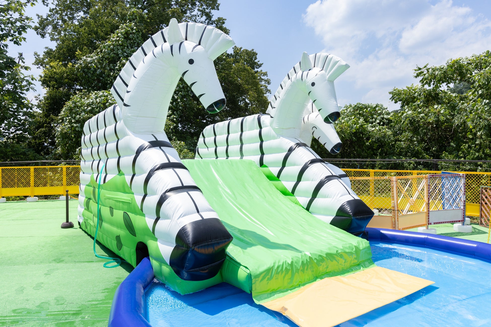 2匹のジャンボシマウマの間を滑る抜けるスライダーです。