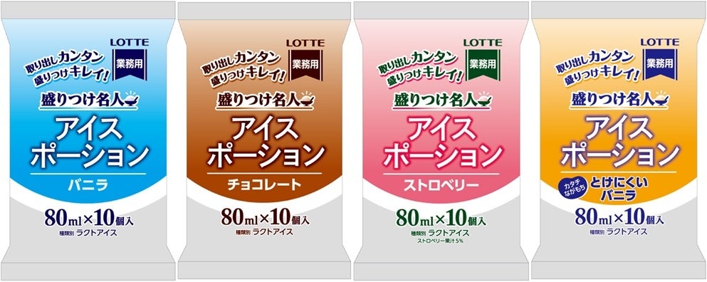 株式会社ロッテは、『アイスポーション バニラ』『アイスポーション チョコレート』『アイスポーション ストロベリー』を業務用新商品として発売いたします。