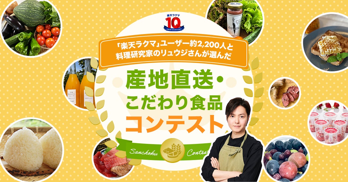 楽天グループ株式会社(以下「楽天」)が運営するフリマアプリ「楽天ラクマ」は、「楽天ラクマ」がサービス提供開始から10周年を迎えたことを記念して、食品事業者向けの直販サービス「産地直送・こだわり食品」にて出品される食品を対象に、約2,200名によるユーザー投票と料理研究家「リュウジ」さんが優れた商品を選出する「産地直送・こだわり食品コンテスト」を実施し、本日コンテストの結果を発表いたしました。また併せて、10%オフクーポンキャンペーンと、抽選で最大2,500円オフクーポンがもらえるキャンペーンも開始しました。