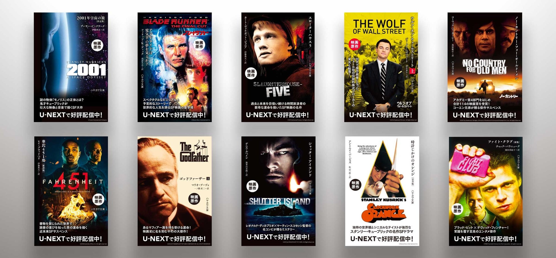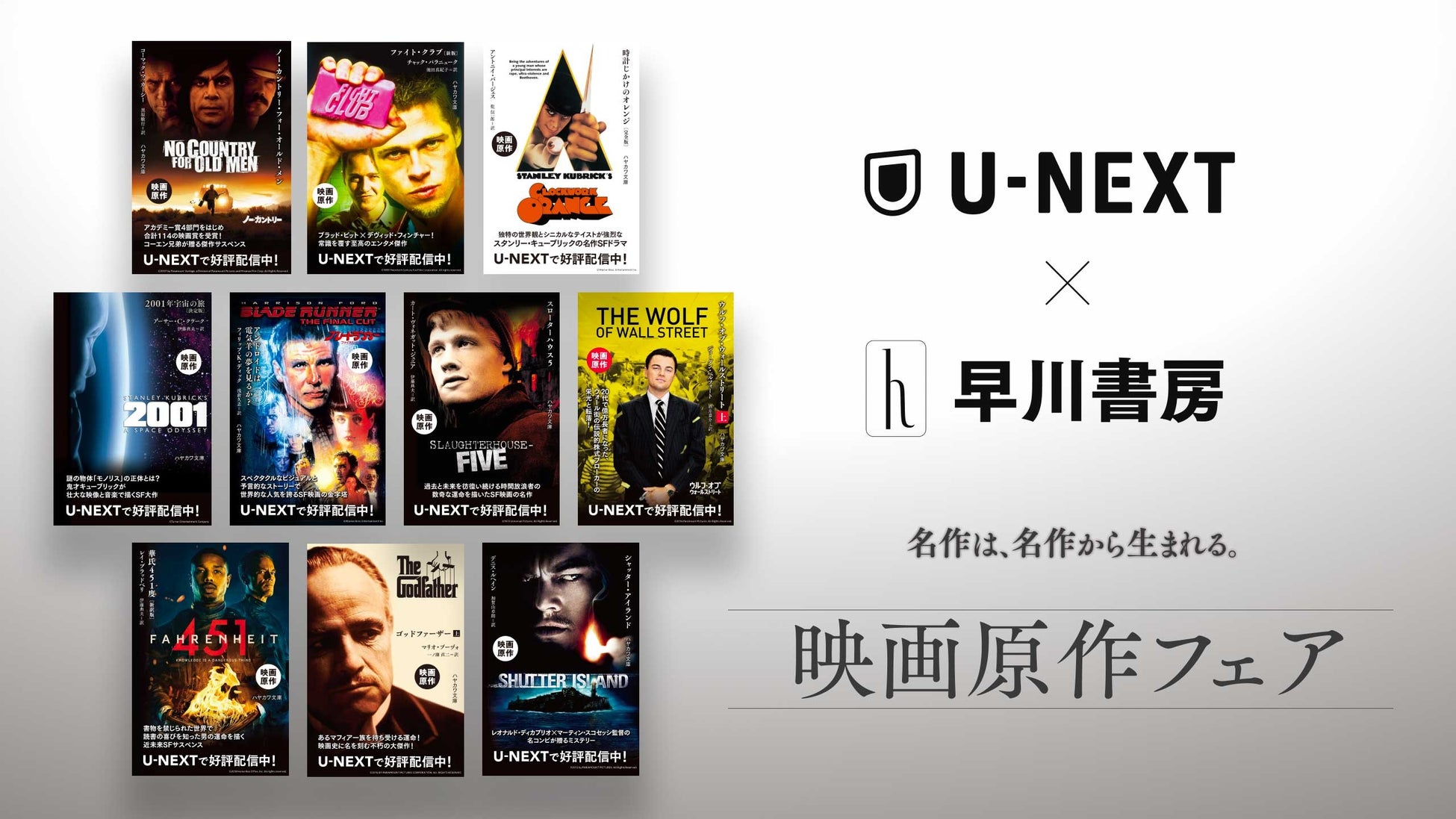 早川書房は国内外の文芸、SF、ミステリ、ノンフィクションなど多種多様なジャンルの出版を手がける一方、数多くの名作映画の原作を贈り出してきました。これら原作本の売上が依然好調であることから、同社は「名作は、名作から生まれる。」をキャッチコピーに書店店頭でのフェアを企画。数多くの名作を配信しているU-NEXTとともに、原作本のカバーを映画のキービジュアルに変更し、書店店頭から名作映画の再活性化を促します。