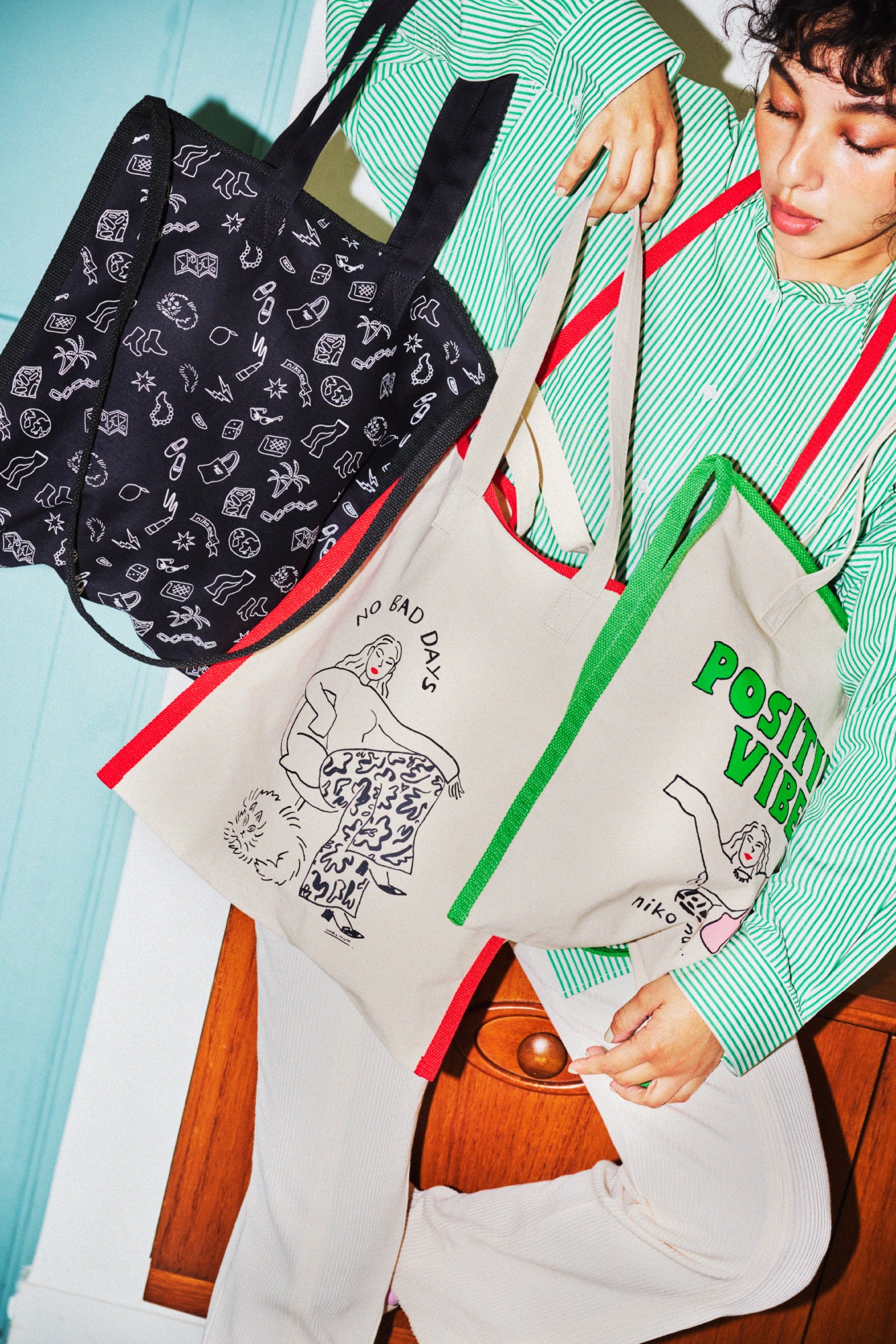 ニコアンドは、1月6日(金)より、東京を拠点に活動するイラストレーター「WALNUT(ウォルナット)」とコラボした一部商品のWEBストア先行予約と「WALNUTによる描き起こしオリジナルイラスト購入権」の抽選会をスタートします。