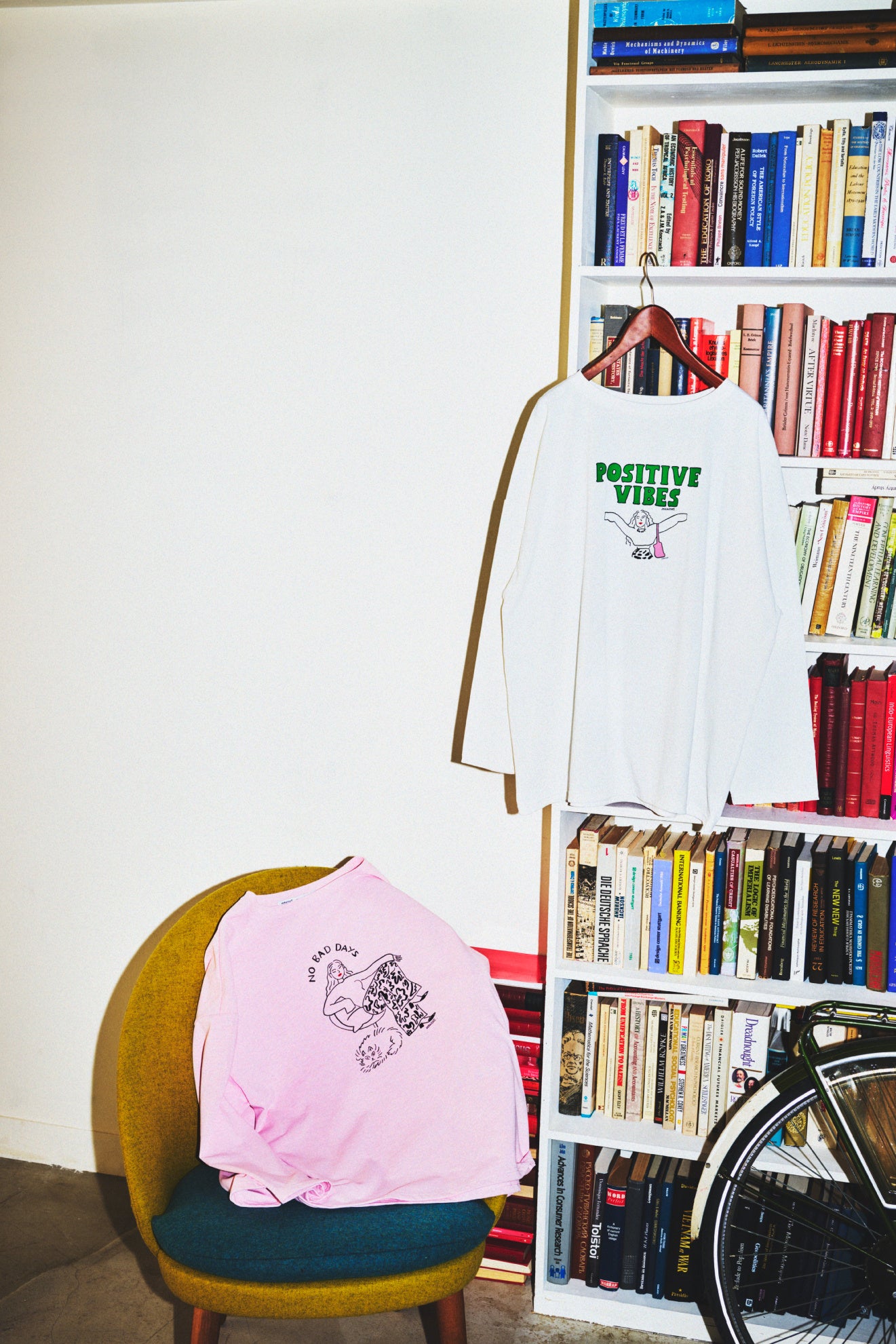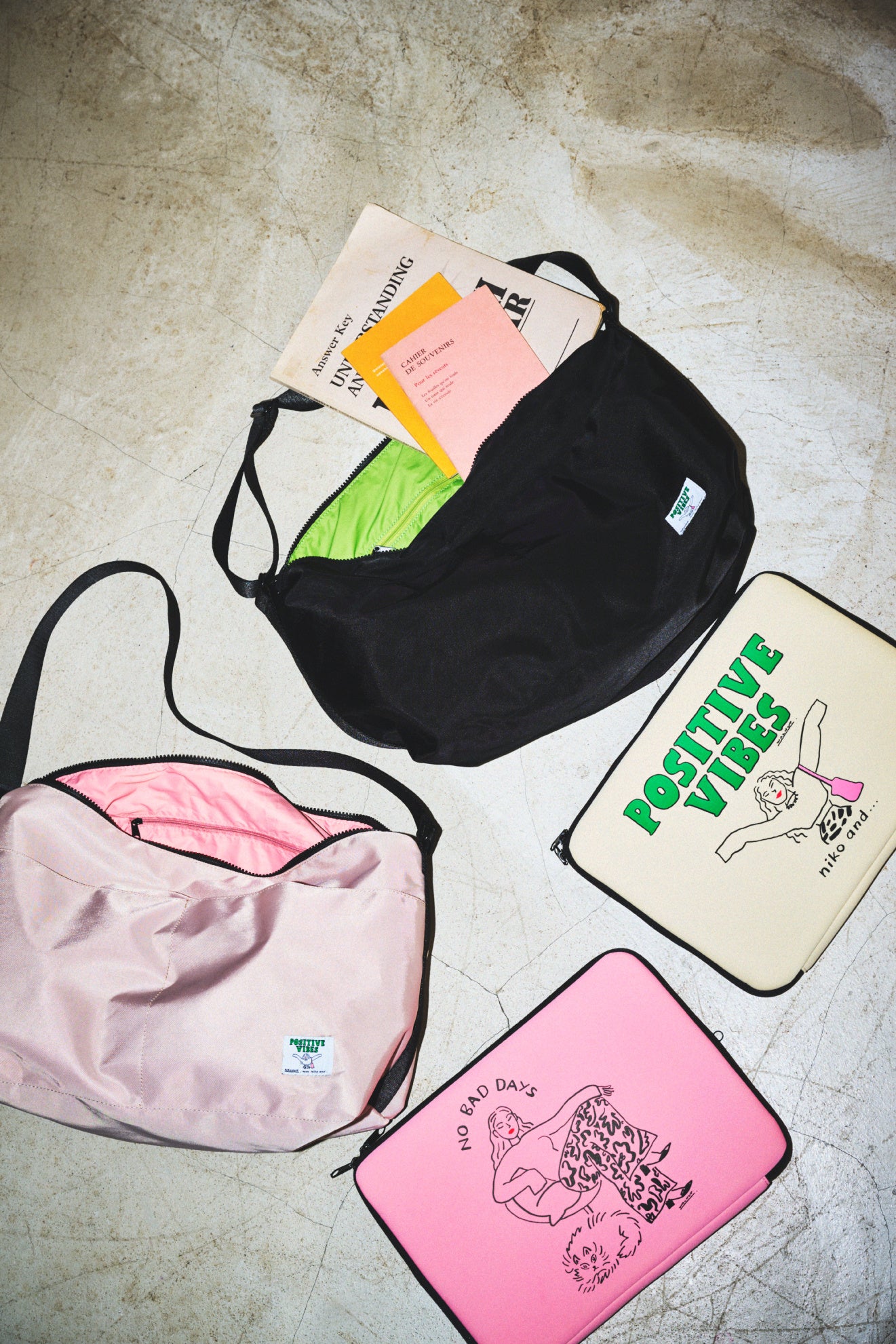 コラボレーションのテーマは「新生活」です。これから始まる新しい生活が明るく楽しいものになるように、ポップでポジティブな世界観を2種類の女の子をアイコンにしたイラストと楽しさと遊び心が詰まったエネルギッシュな総柄の3種類のアートで表現しました。ベーシックなTシャツや、人気のあるトートバッグの他にペンケース・IDケースなど、日常を明るく彩るラインアップでお届けします。