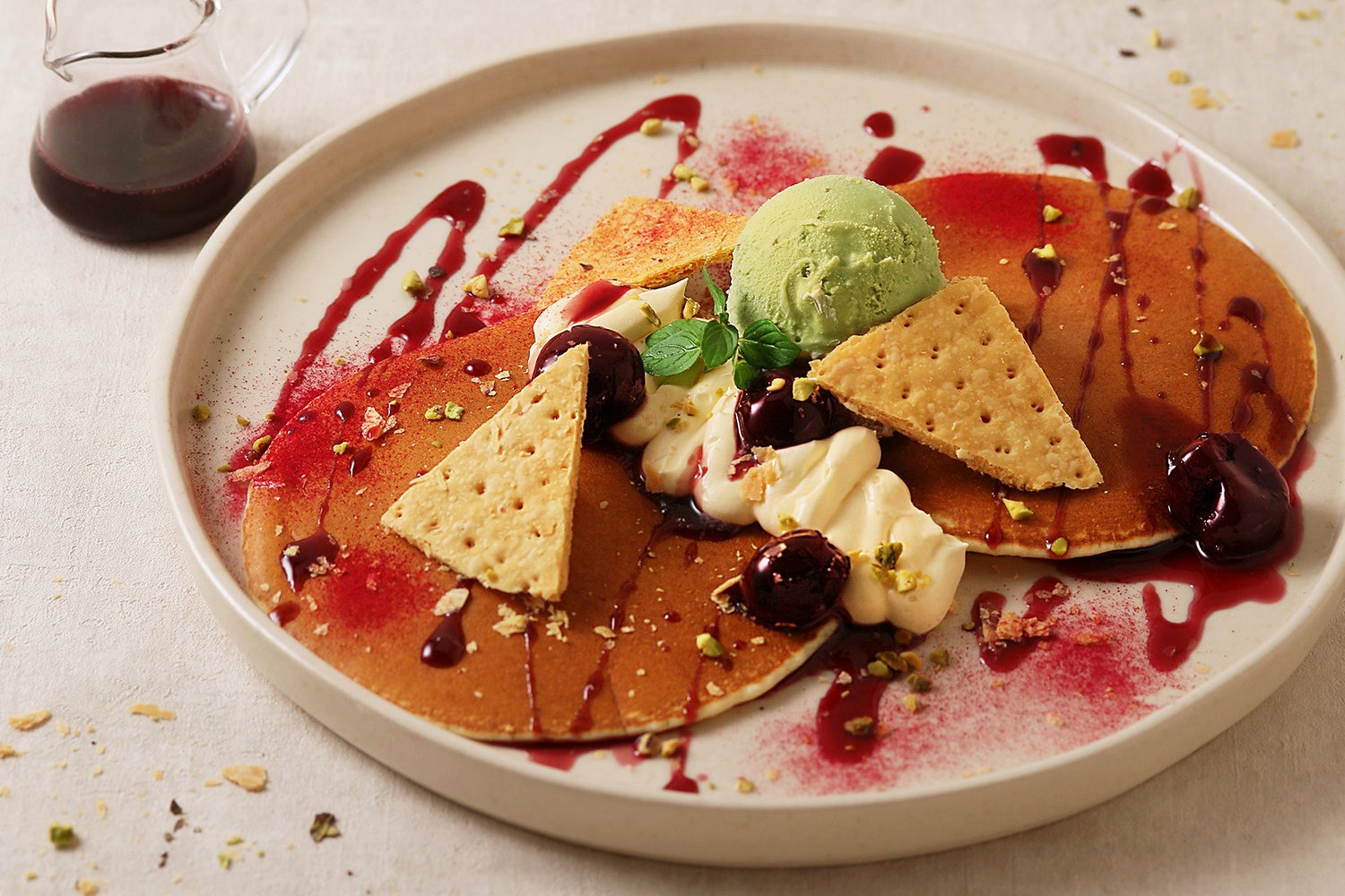 チェリーとピスタチオアイスのパンケーキ 1,410円(税込)