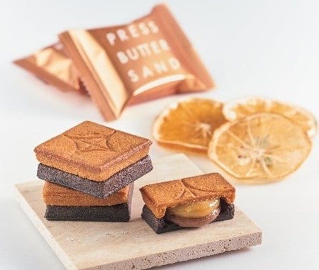 新作の登場。2層のクリームと2色のクッキーはプレスバターサンドならでは。