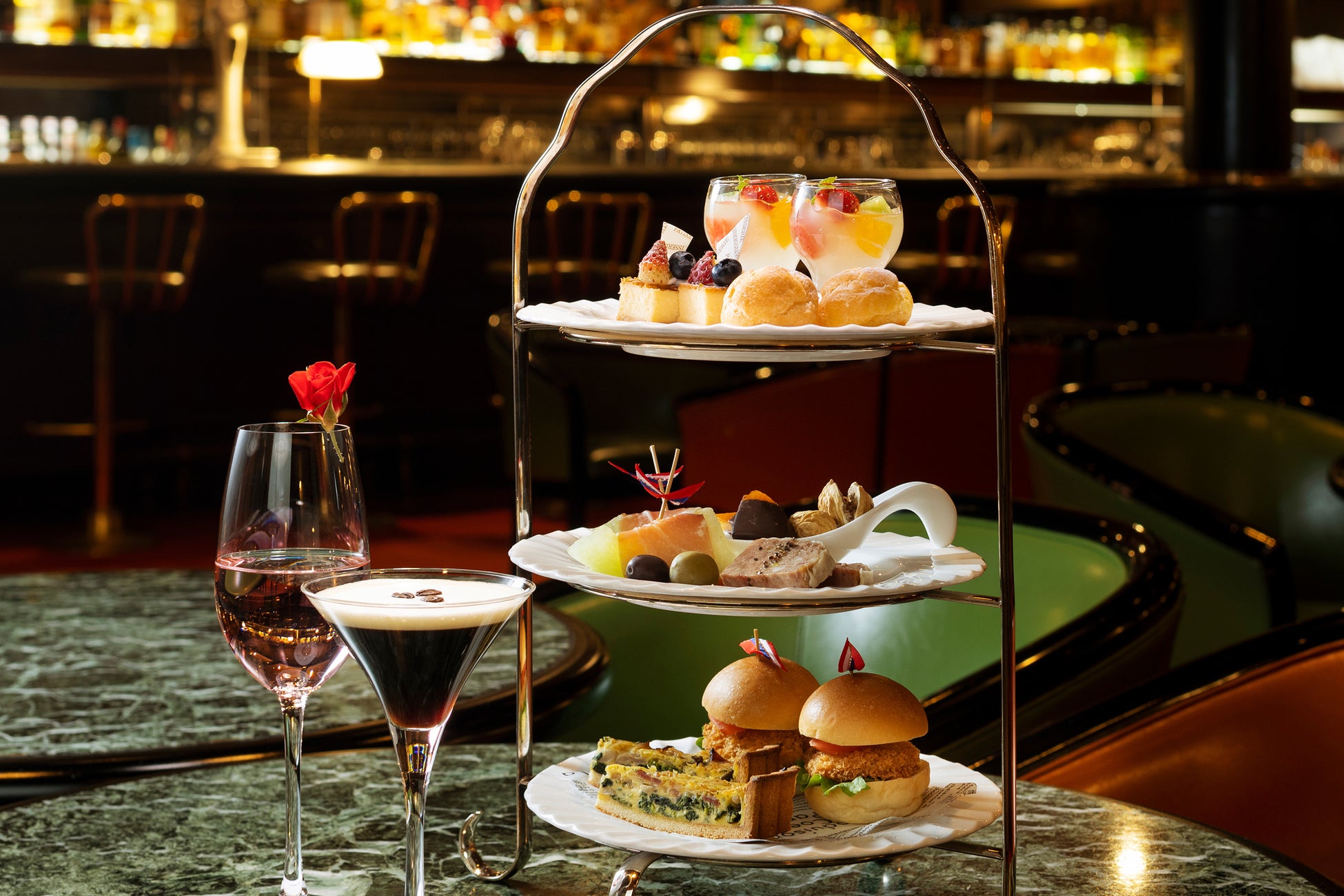 夜にお愉しみいただくアフタヌーンティーセット。スイーツは可愛らしいクリスマススタイルでご用意しております。