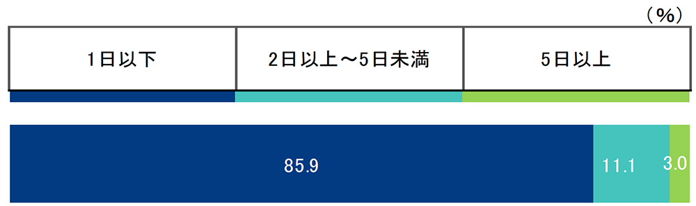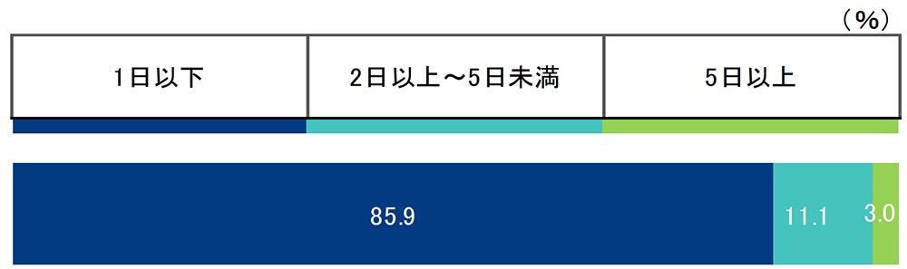 学生が参加したインターンシップ・1day仕事体験の件数全体のうち、「1日以下」のプログラムは85.9%、「5日以上」のプログラムは3.0%