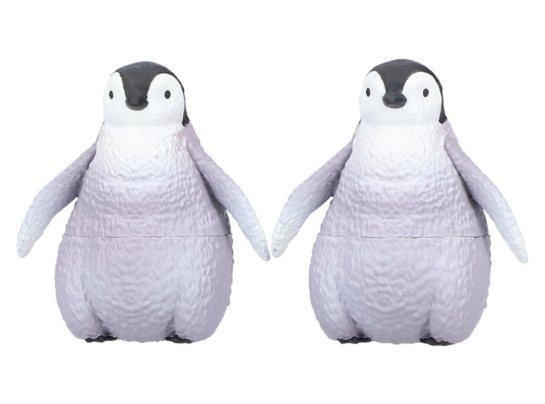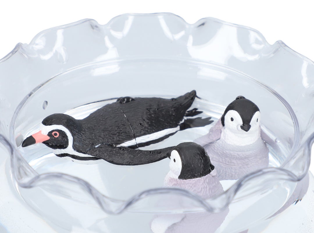 ペンギンは種類によって横浮きのものと縦浮きのものに分かれ、「フンボルトペンギン」「アデリーペンギン」「ヒゲペンギン」は横浮き、「双子のベビーペンギン」「コウテイペンギン」は縦浮きとなっており、水に入れるとそれぞれ胴体や顔を水面からぴょっこり出して、ぷかぷかと浮かびます。