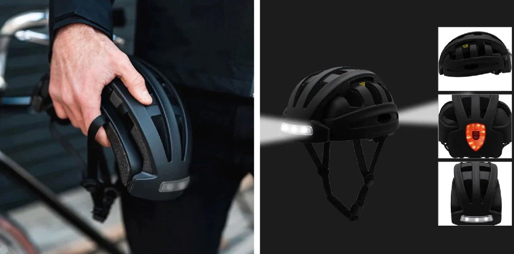 ■GeeMet 約10時間点灯のLEDライト内蔵・小さく折りたたんで持ち運びに便利な自転車ヘルメットGeeMet【高強度な一体成型/通気性良く洗える衛生的な内側パッド/USB-C充電式/大人用男女兼用】
