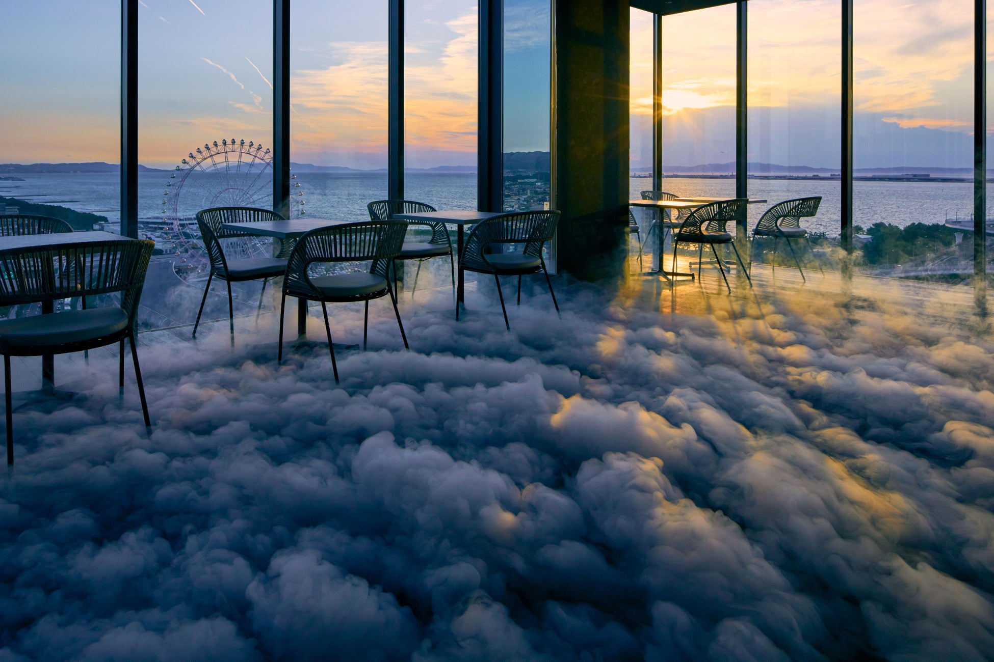 関西国際空港周辺ならではの絶景を活かした空間で、まるで雲の上にいるかのように感じられる演出を実施。フリーフローコーナーでは、夕焼け色のノンアルコールサングリアや、フォトジェニックな綿菓子づくりを体験できます。
