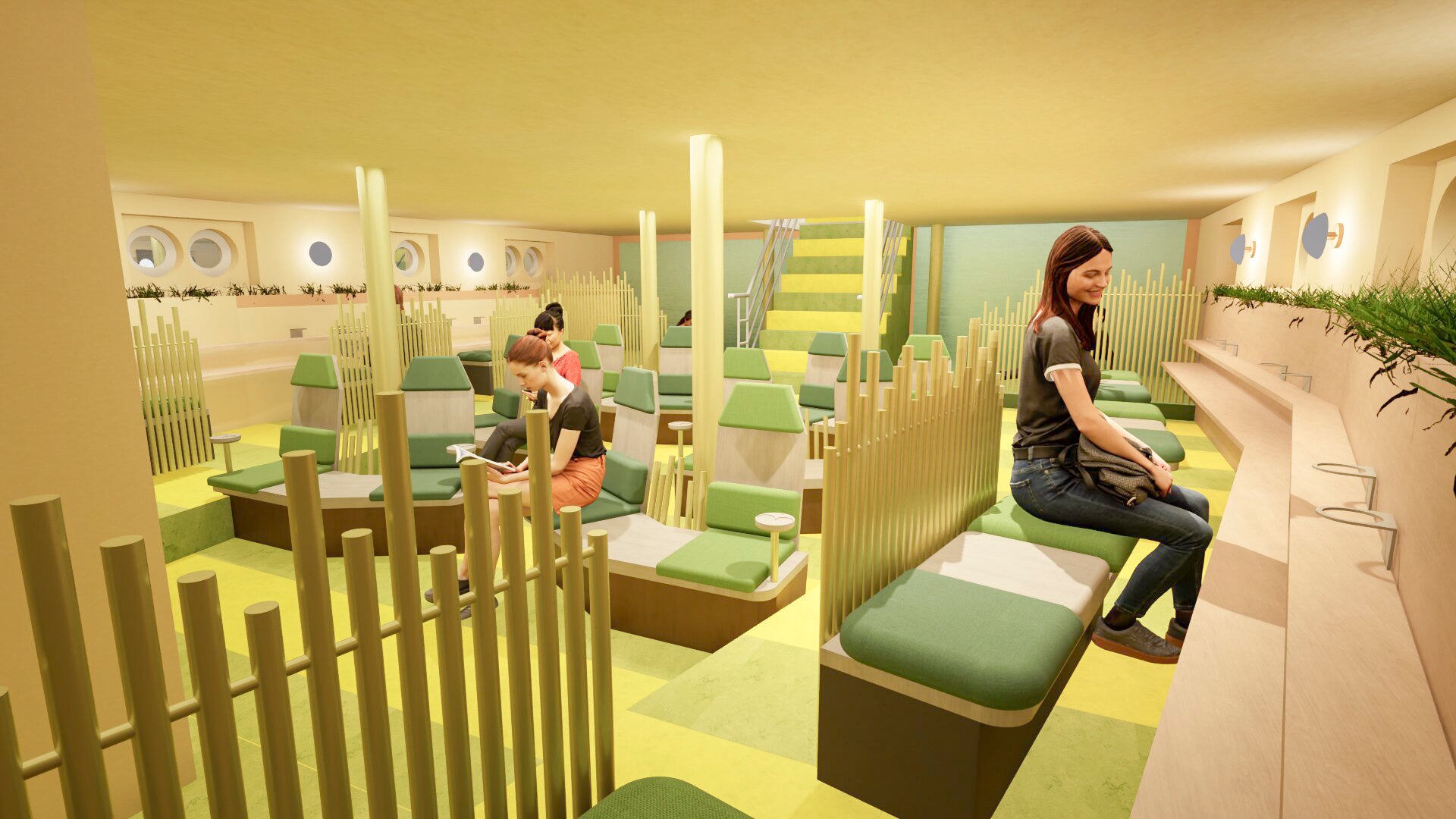 地階には、ワークや読書など個人でも利用しやすいUSB電源完備のカウンター席のほか、靴を脱いでくつろげるファミリーにもぴったりな半個室スペースがあります。