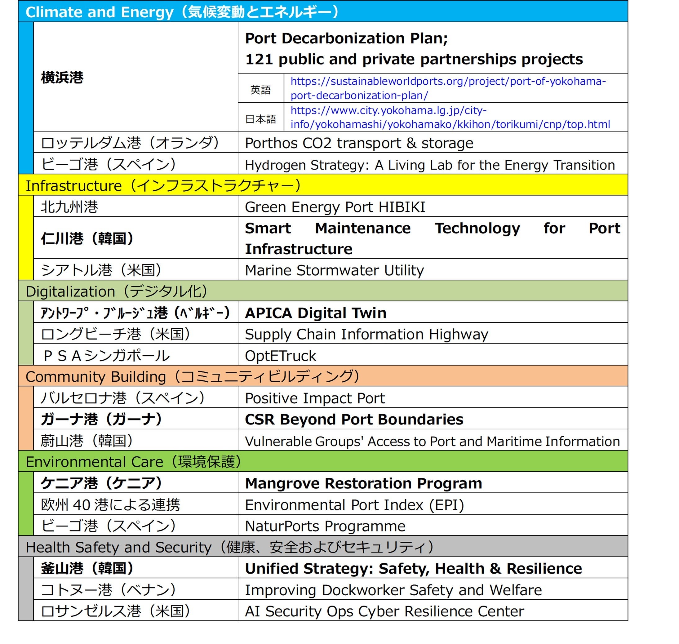 IAPHが世界各地の港湾の知見を集約するWPSP(World Ports Sustainability Program)の取組を一層推進するために、世界中の港湾から脱炭素など6カテゴリーでプロジェクトを募集し、優れた案件を選出しています。
