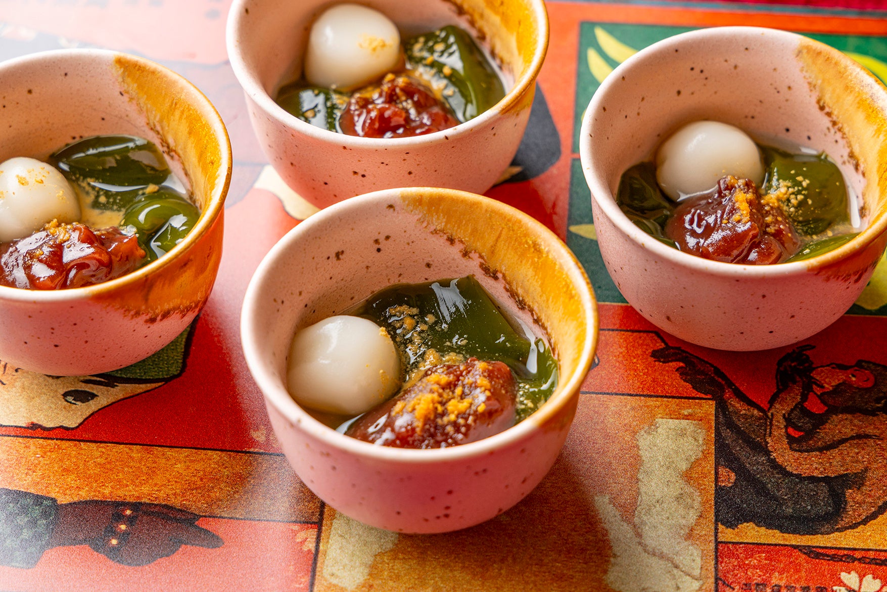 デザートコーナーには、日本生まれの「ミルクレープ」や、黄色いクリームがレトロな印象の「モンブラン」、控えめな甘さが魅力の「抹茶あんみつ」など、ノスタルジーを感じていただけるメニューが並びます。