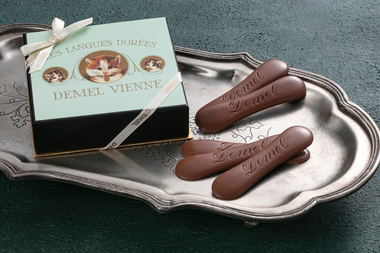 1786年ハプスブルク家ゆかりのウィーンで生まれた老舗洋菓子舗。230年以上の時を経た今でも世界の人々を魅了しています。デメルを代表する猫の舌の形をモチーフにしたチョコレート。カカオ本来の味わいと口溶けが楽しめます。