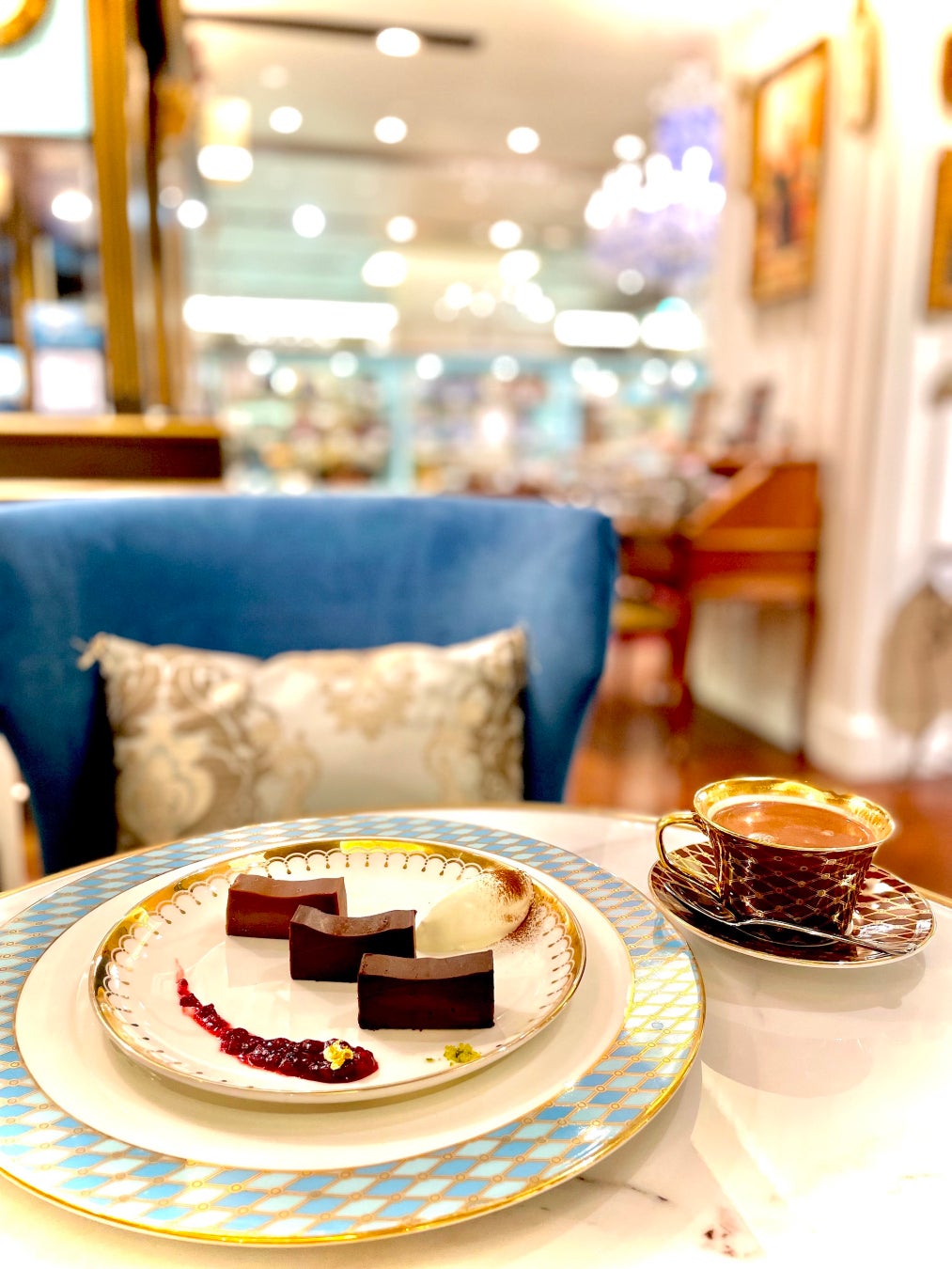 マリベルの世界初のエクスクルーシブストア。バカラのシャンデリアがきらめく空間でアートなチョコレートメニューを。