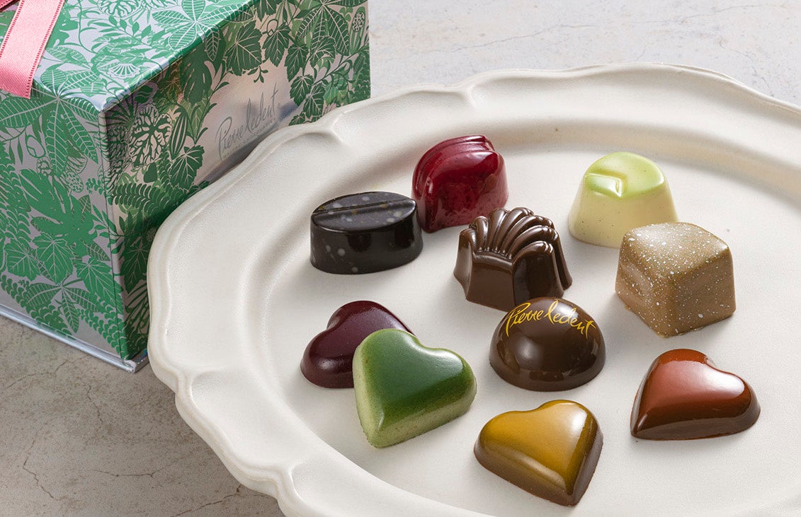 ベルギーの伝統を受け継ぐショコラティエ。個性が光る独創的なショコラはまるで宝石のよう。 5種類のショコラがアソートされたサンク・エトワールに定番のハートを加えた特別な一箱。