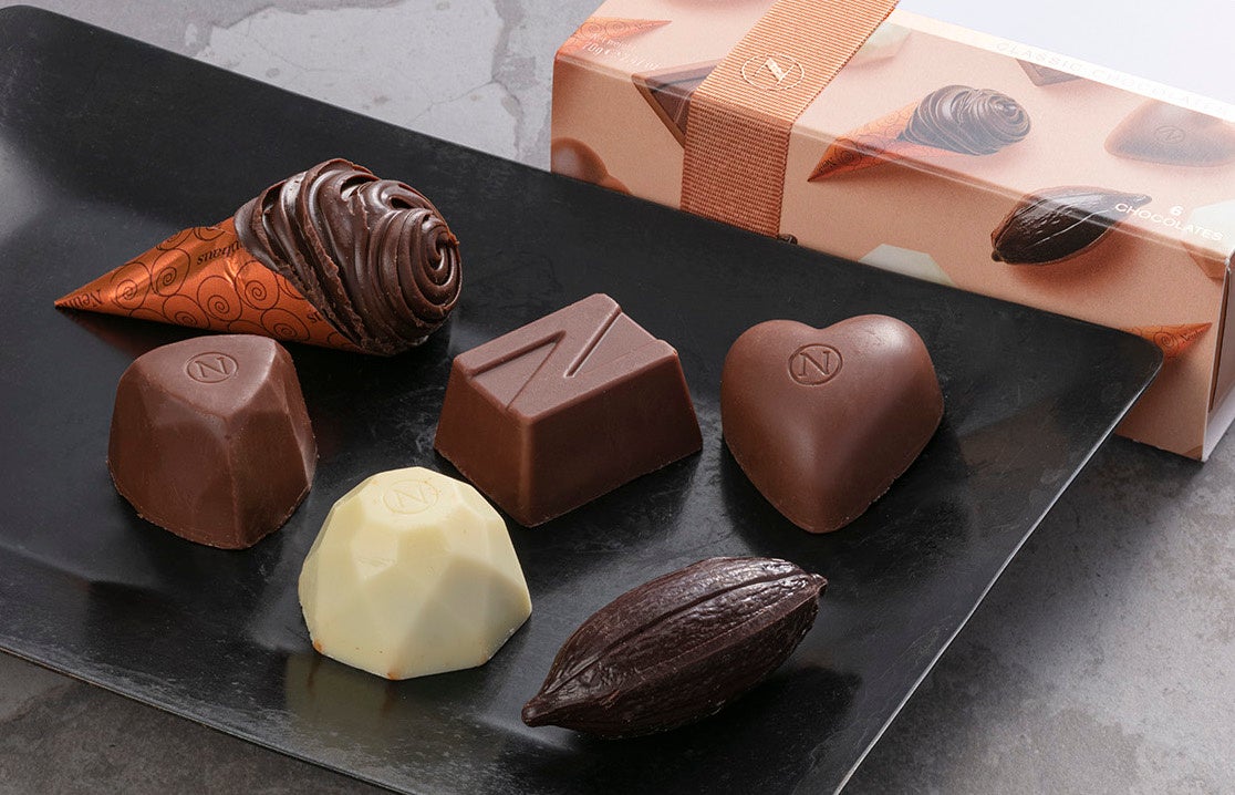 カカオ職人、ブノワ・ニアンが産地を巡って選定したカカオを使用し、独自製法によるチョコレートを提供。カカオ探しの旅をイメージしたコレクション。旅先で出会った味を4種類のボンボンショコラで表しました。