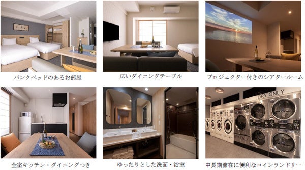『MIMARU大阪 心斎橋EAST』は、新旧の飲食店が立ち並ぶ大阪グルメの街、東心斎橋エリアに位置する、都市滞在型のアパートメントホテルです。ハリウッドベッドとバンクベッドを設けたファミリーアパートメントタイプ(4名定員)、和室を備えた2ベッドルーム ジャパニーズアパートメントタイプ(7名定員)など合計40室、39㎡~58㎡の客室で構成しています。開業キャンペーンご利用で、1室1泊あたり21,500円~(4名利用時)、お得な連泊プランもご用意しています(※4)。