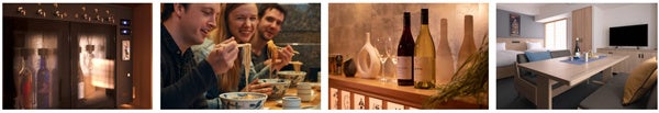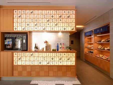 エントランスから一歩足を踏み入れると、のれん、提灯、屋台、酒樽など、日本の粋なデザインを集めた「IZAKAYA」空間が広がります。ウェルカムサービスの日本酒やソフトドリンク・駄菓子で、みんなで集まった記念に乾杯したり、出がけや寝る前に一杯飲んだり、時間に縛られず、お酒と会話で深まる「ほろ酔い」コミュニケーションをお楽しみいただけます。