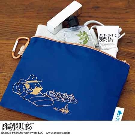 『リンネル』5月号増刊には、ショッパーのようなデザインの2wayエコバッグと、取り外せるカラビナつきのポーチという2大付録がつきます。どちらも〈ビーグル・スカウト〉の絵柄をデザイン。寝袋に入ったスヌーピーとウッドストックたちが楽しそうに過ごす様子がかわいいです。