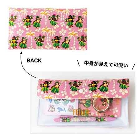 パームツリーやプルメリアに囲まれて楽しそうに踊るフラガールたちが愛らしい、フェイラーの〈マナマナ〉。『InRed』2023年4月号増刊の付録では、気分が上がる新色のピンクで文具セットをデザインしました。中身が見えるクリアポーチの中に、ちょっとしたお手紙を書くのに重宝する一筆箋とボールペン、可愛くラッピングできるマスキングテープ、楽しげなデザインがのった付箋をセットしています。