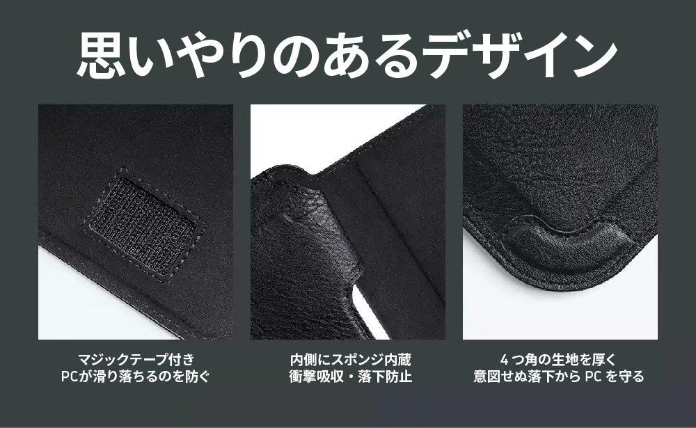 しっかりとした生地なので意図せぬ落下から大事なラップトップを守ってくれます。