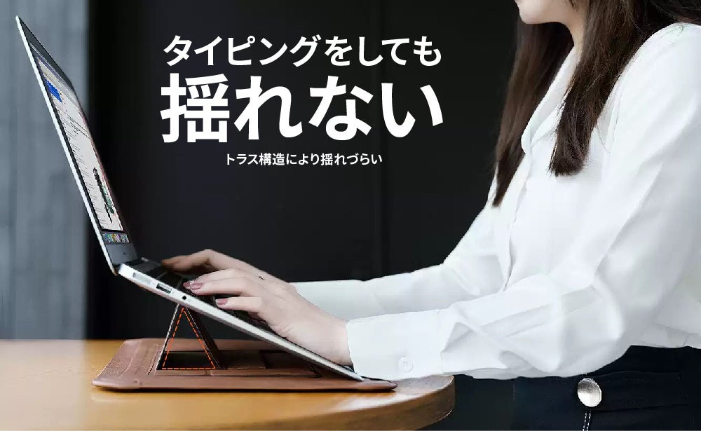 ケースだけでなくラップトップスタンドとしても使用可能!