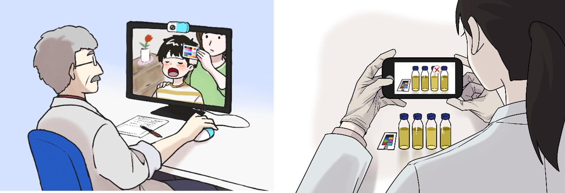 TOPPANが培ってきたカラーマネジメント技術は、画像の色を補正・変換する技術として、デジタル画像による正確な判定が求められる利用シーンで活用が可能です。例えば、オンラインでの診察において医師が患者の顔や患部の色を適切に確認し診断する必要がある遠隔医療や、品質検査などの管理工程で製品の色を確認して記録したり、遠隔地の拠点と共有することが必要な製造現場などで、「CAM-FIT®」を用いて撮影画像を適切な色に再現することができます。TOPPANのカラーマネジメント技術により、検査DX・製造DXなどに貢献できる可能性を展示します。