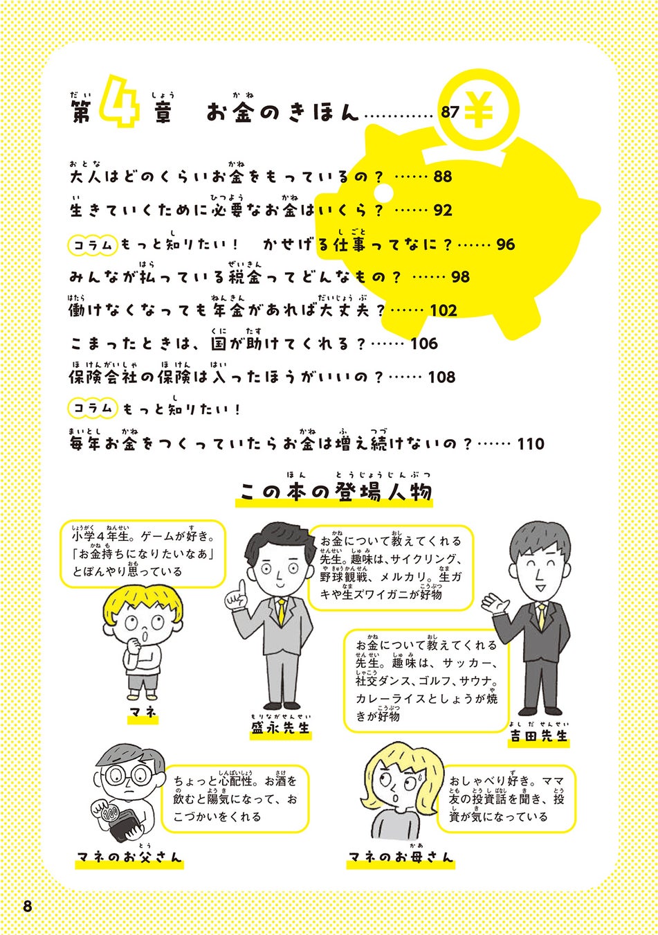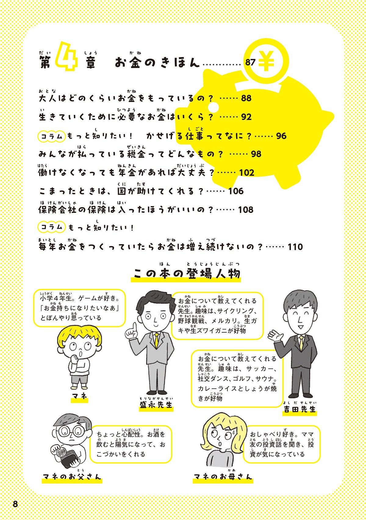 タメになるコラムや、気を付けなければいけないお金にまつわる事例も紹介しながら、お金の基礎知識から資産形成の方法まで分かりやすく解説。子どものうちに知っておいてほしいことや、将来損をしないために覚えておいてほしいことをこの一冊で学ぶことができます。