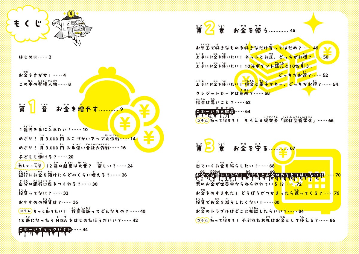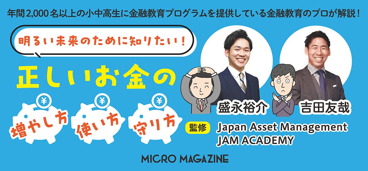 本書は年間2,000名以上の小中高生に金融教育プログラムを提供しているJAM ACADEMYのトップ2名を監修に迎え、子どもたちの明るい未来に向けた正しいお金の増やし方・使い方・守り方とお金のきほんをイラスト付きでわかりやすく解説していきます。