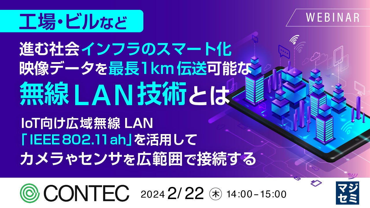 本セミナーでは、近年需要が増えているカメラの画像や映像データを活用したIoTシステムに適した、新しい種類の無線通信規格「IEEE802.11ah」に焦点を当てて、どんな特徴があるのか、他の無線企画とどう異なるのか、などを様々な事例をもとに詳しく解説します。
