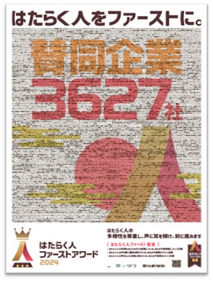 株式会社朝日新聞社(代表取締役社長:角田克)とミイダス株式会社(代表取締役社長:後藤喜悦)が共催している「はたらく人ファーストアワード2024」(主催:ミイダス・朝日新聞社)で発表された「はたらく人ファースト宣言」には、3,627社が賛同しました。この賛同企業数は、昨年の1,224社を大きく上回り、働き方や職場環境の向上に対する企業の関心の高まりを示しています。