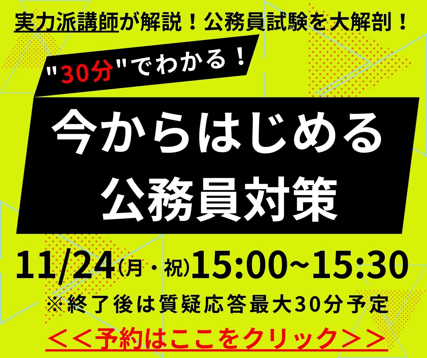 【TAC公務員】「30分でわかる!今からはじめる公務員対策!」を11/24(祝月)にTAC水道橋校から配信!<参加無料・要予約>