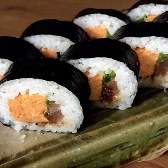 巻き芯:まぐろのたたき・玉子/黄金いか・きゅうり/サーモン・とびっこ・芽ネギ/たこ・大葉・明太子/穴子・スモークサーモン・胡瓜/山芋とおくら・帆立貝柱/いくら・まぐろたたき/海老・ピンクガリ・大葉/カニ身・数の子 細巻き 以上8種 (※写真はハーフサイズ2本分です。)